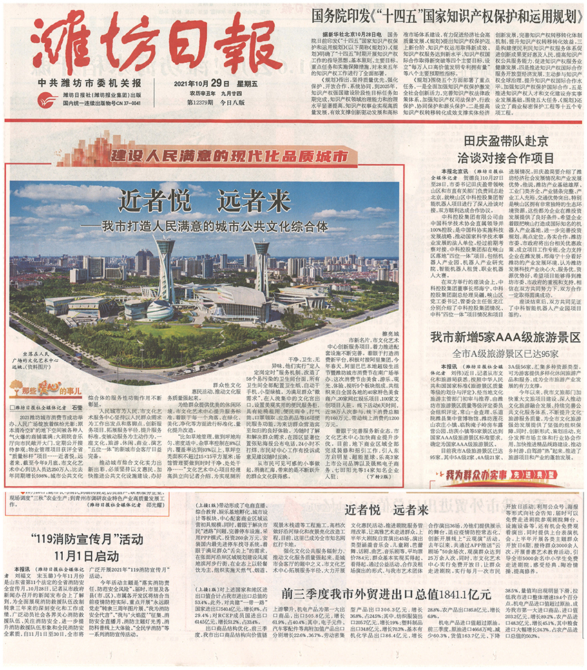 10月29日,濰坊日報對我公司服務管理的濰坊市文化藝術中心項目進行了頭版報道,現就我公司服務管理的大型公共建筑項目做如下介紹: 近年來,伴隨經濟的快速發展,居民文化水平、收入水平不斷增加,消費需求不斷升溫,進而帶動文化、娛樂、交通等公眾場館物業服務的需求逐年增加,......